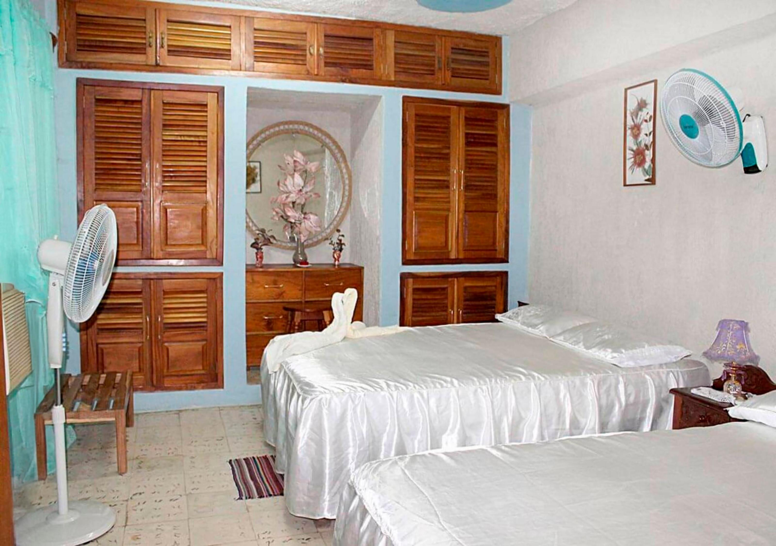 Room on the ground floor. It has two double beds, private bathroom, hairdryer, air conditioning, fan, flat TV, refrigerator, 110V and 220V. It is a spacious and quiet room (16 m2), perfect for couples with children.